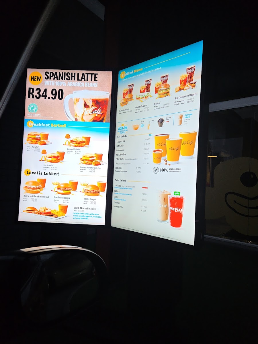 Introducing the menu at the McDonald's Tyger Manor Drive-Thru offers a delightful blend of fast food favorites that cater to both families and quick diners alike. Located on Willie Van Schoor Ave in Cape Town, this bustling hamburger restaurant stands out for its friendly service and accommodating atmosphere. Customers rave about the classic Quarter Pounder with cheese, which has become a highlight for many, emphasizing the restaurant's commitment to quality and flavor.